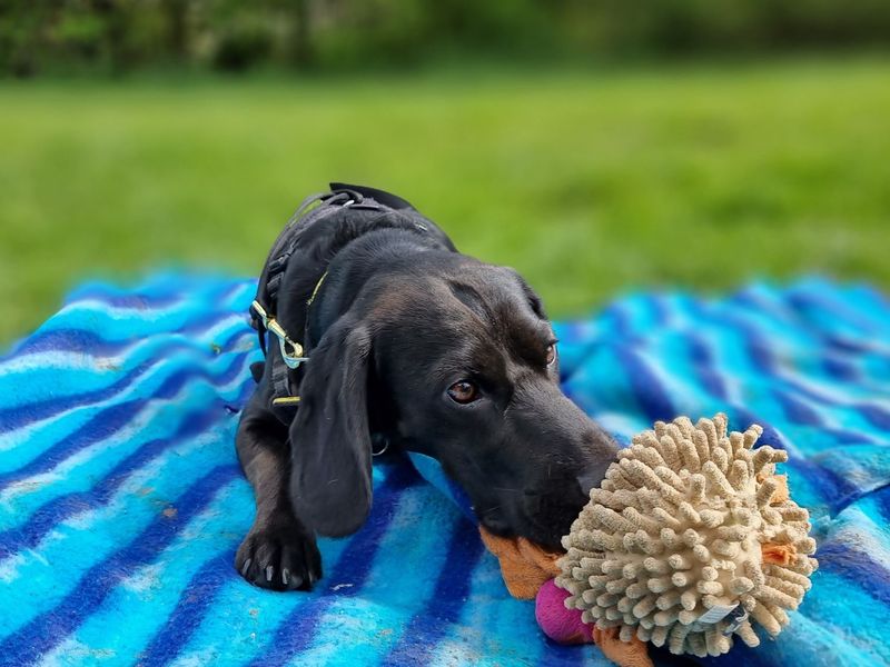 Cooper is a 1-year-old Beagle X Spaniel, and don’t we know it! Clearly proud of his heritage, he likes to follow his nose! This handsome, energetic boy loves sniffy walks, his food and playing with toys. Cooper is looking for owners who will enthusiastically collaborate with him to overcome his challenges and continue his training to allow him to flourish!